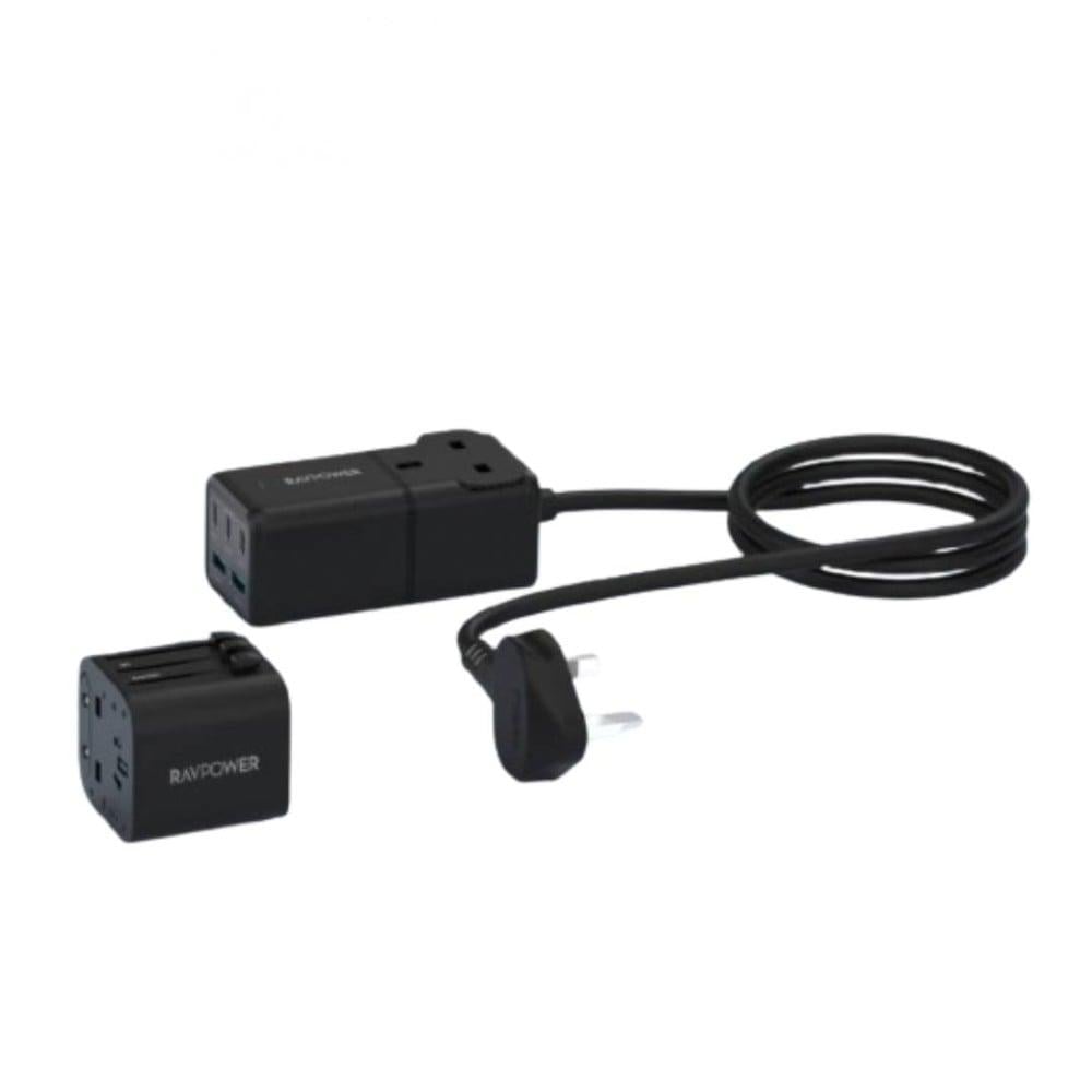 منصة شحن راف باور 75 واط ثلاث منافذ تايب سي ومنفذين USB ومنفذ طاقة مع فيش سفر متعدد المداخل