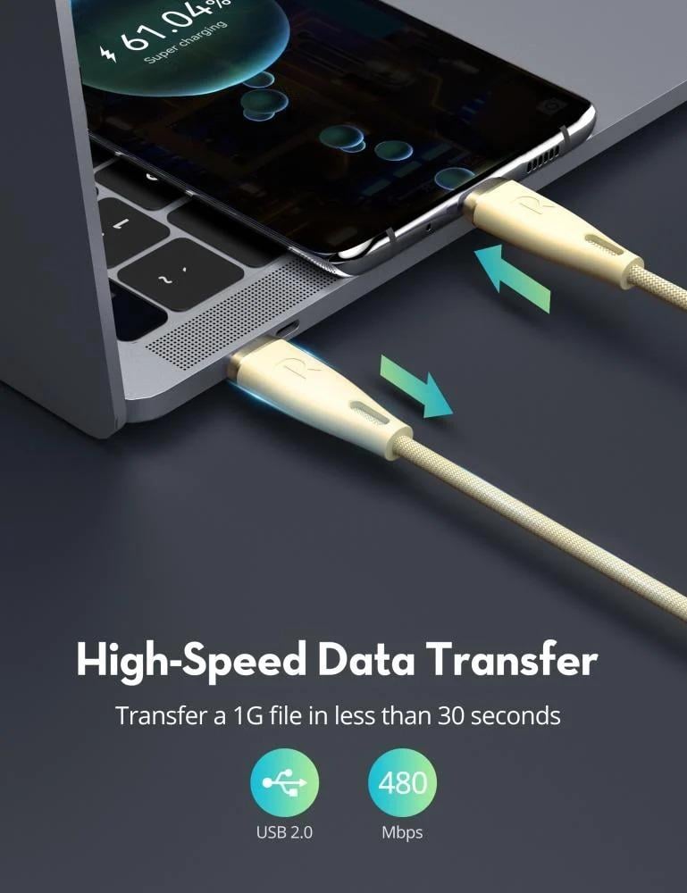 - قوة شحن 60 واط: يوفر السلك شحنًا سريعًا وقويًا لأجهزة الهواتف الذكية، الأجهزة اللوحية، وحتى الكمبيوترات المحمولة.
