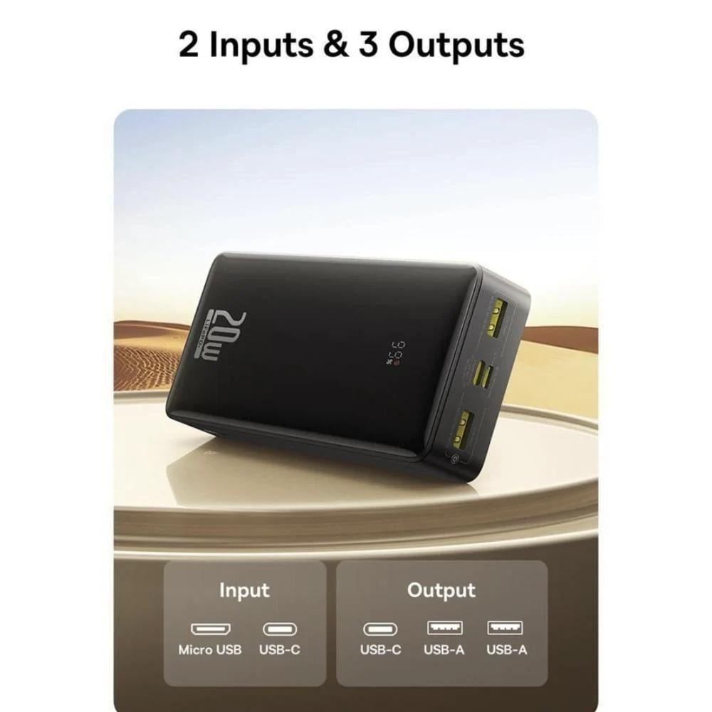 - منافذ الشحن: تحتوي هذه البطارية على منافذ شحن متعددة، بما في ذلك منفذ USB-C ومنفذ USB-A، مما يتيح لك شحن أجهزتك المختلفة بسهولة وفعالية. يمكنك استخدامها لشحن الهواتف الذكية والأجهزة اللوحية والأجهزة الإلكترونية الأخرى التي تعتمد علىمنفذات USB.