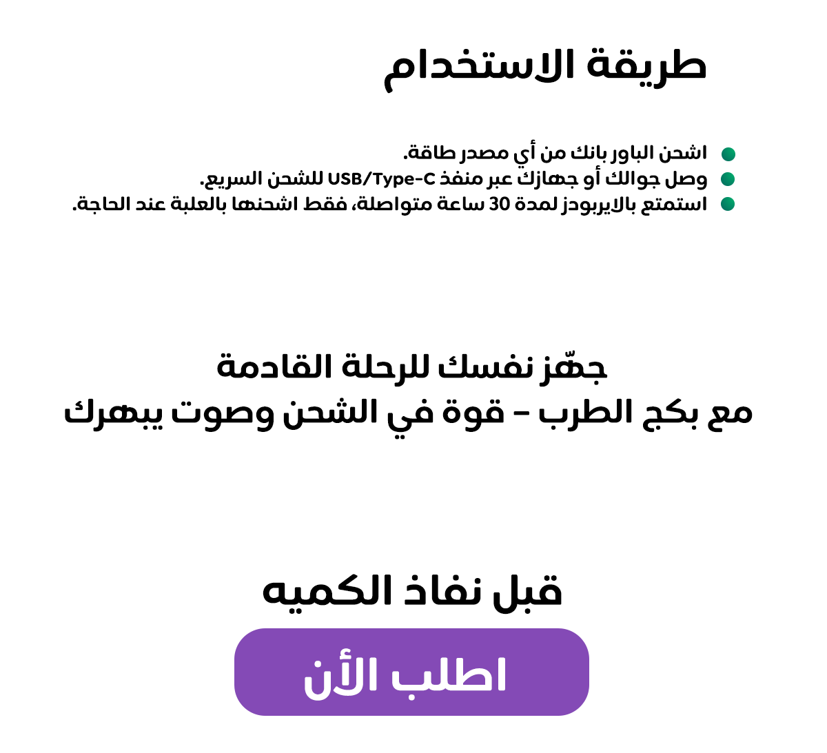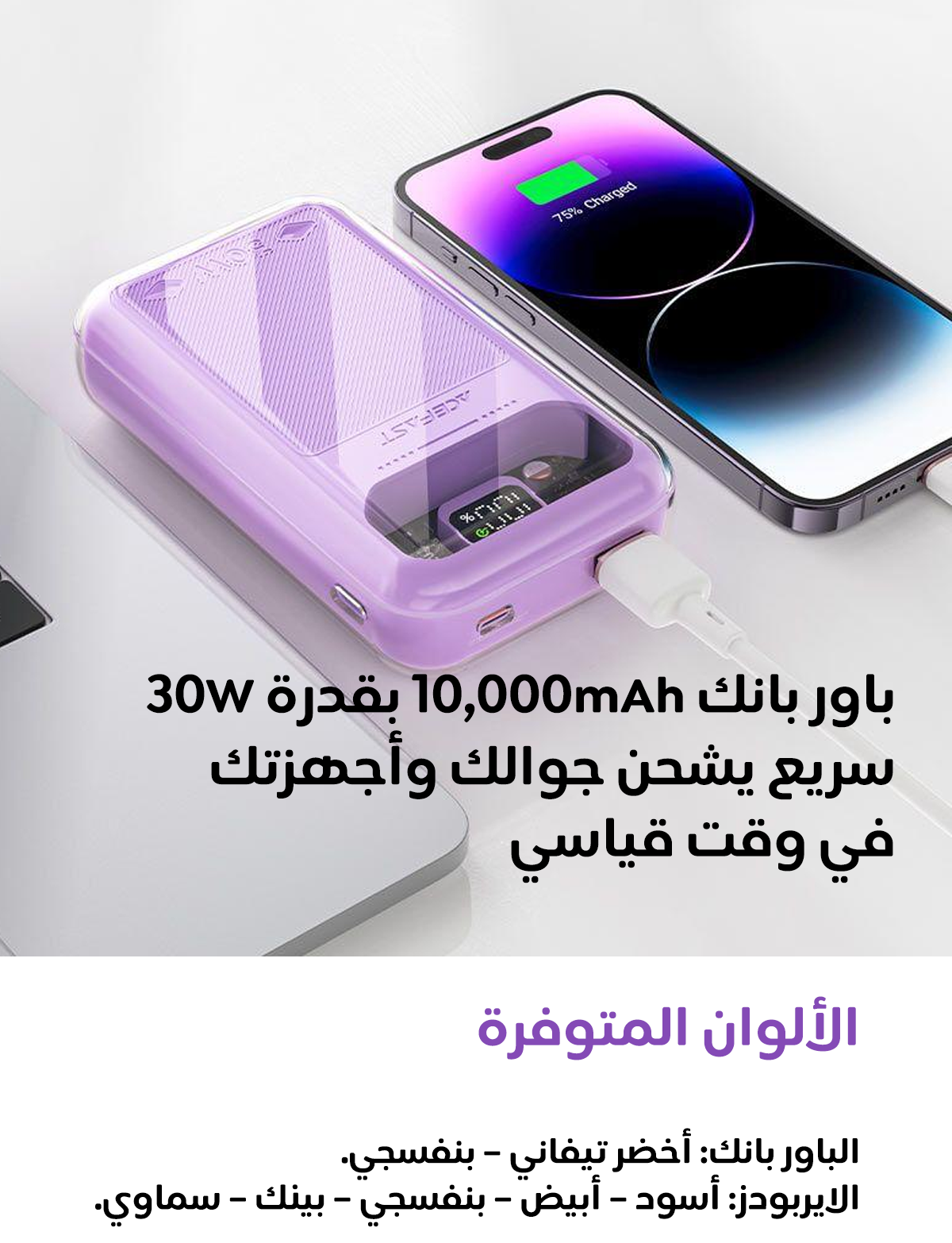 بكج الطرب : ايربودز ايس فاست 30 ساعة + بور بنك 10 آلاف 30 واط