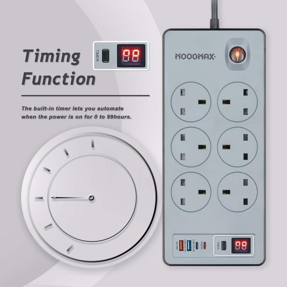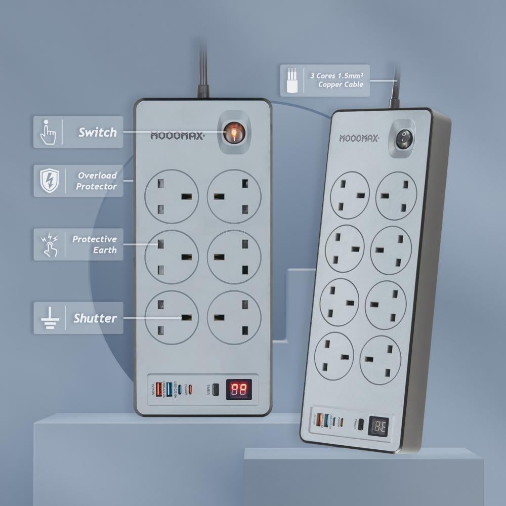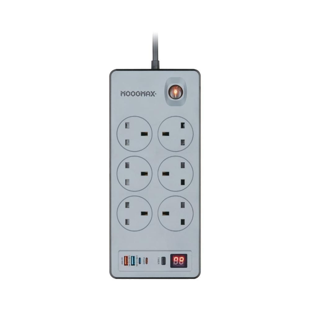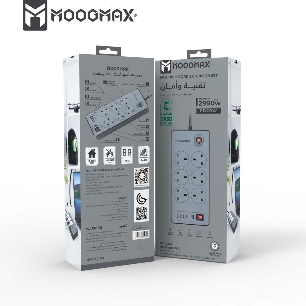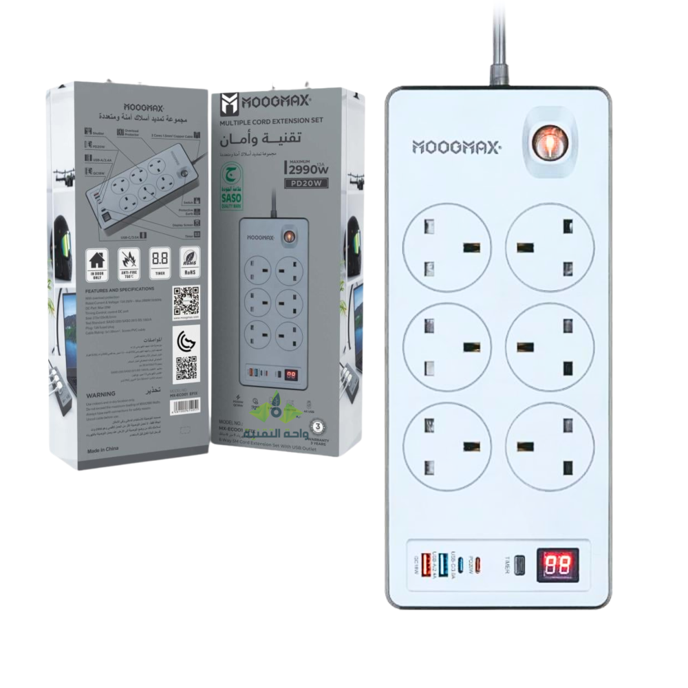 توصيله كهربائيه 6 مقابس كهربائيه و منفذين USB ومنفذين pd بقوه 2990W بطول 5 متر - موج ماكس