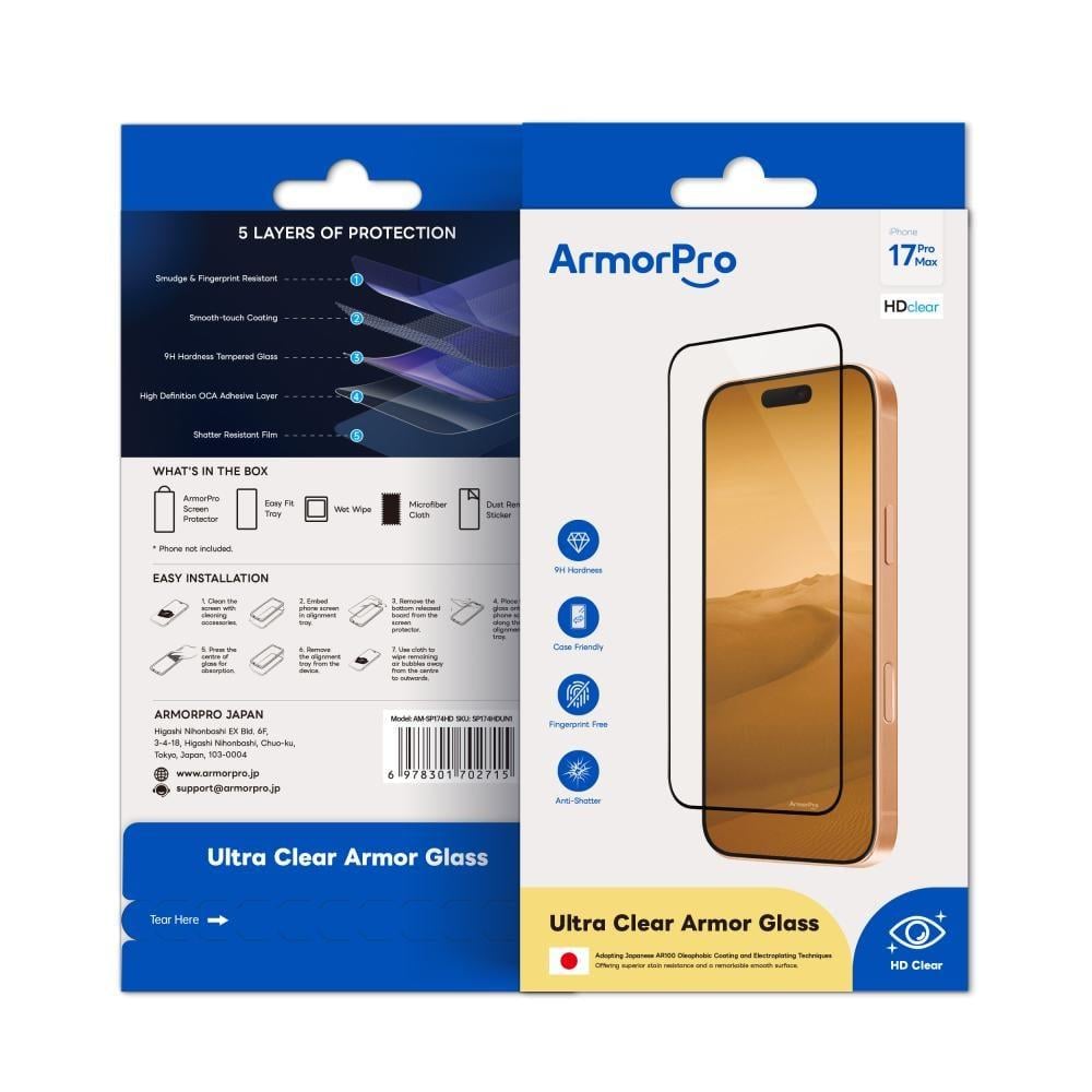 حماية شاشة ايفون 17 برو ماكس ArmorPro – زجاجية شفافة