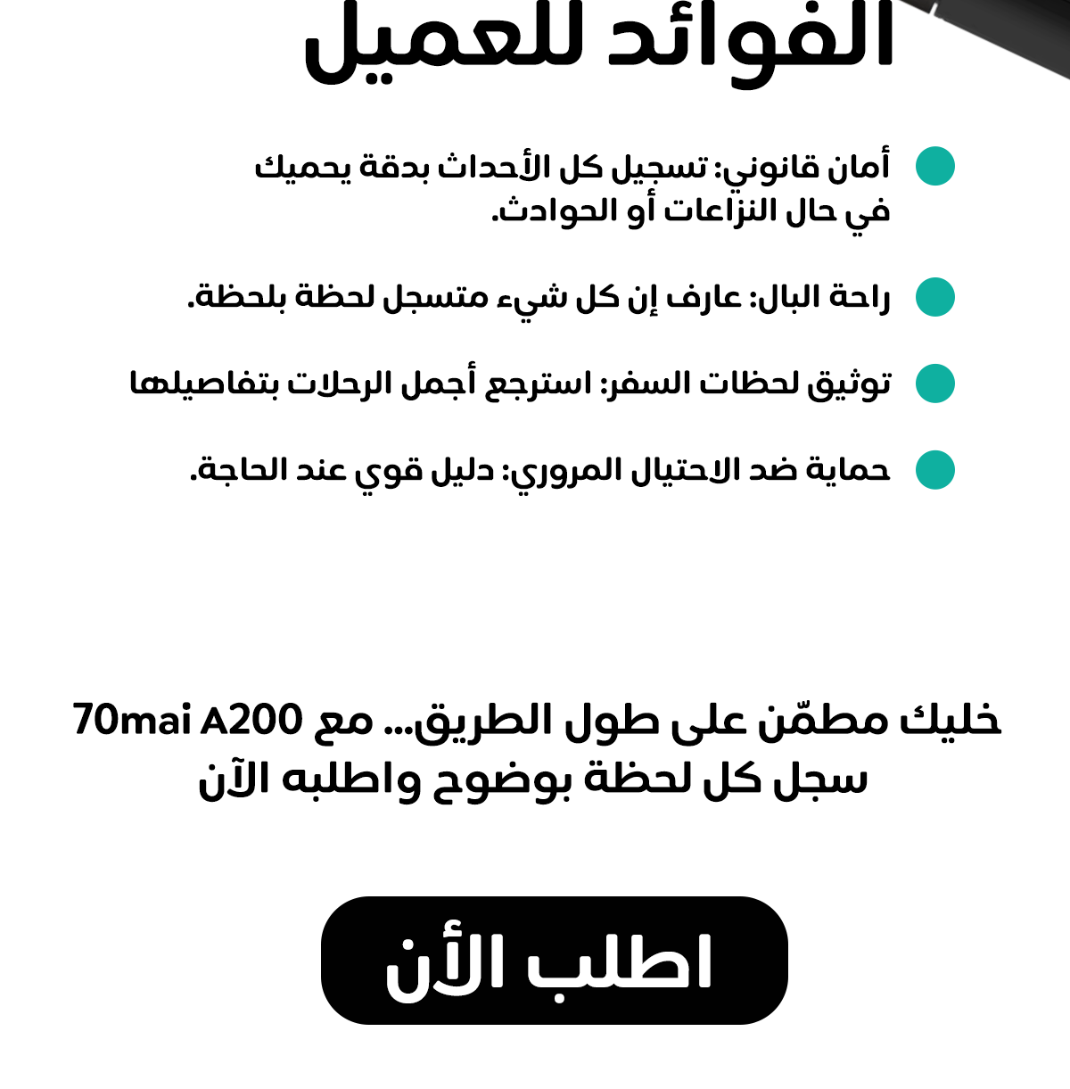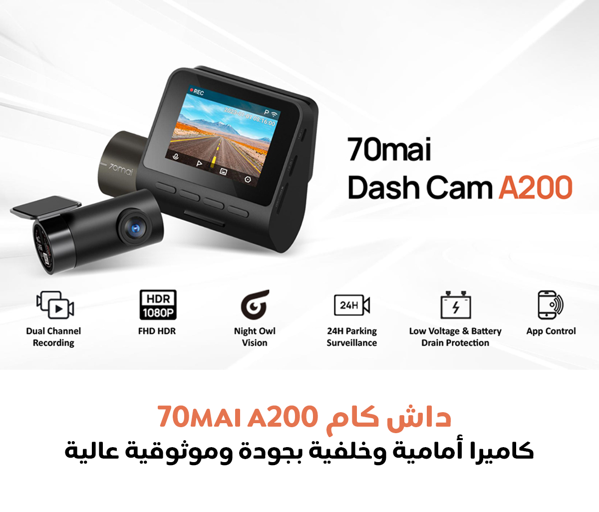 داش كام 70mai A200 كاميرا امامية وخلفية