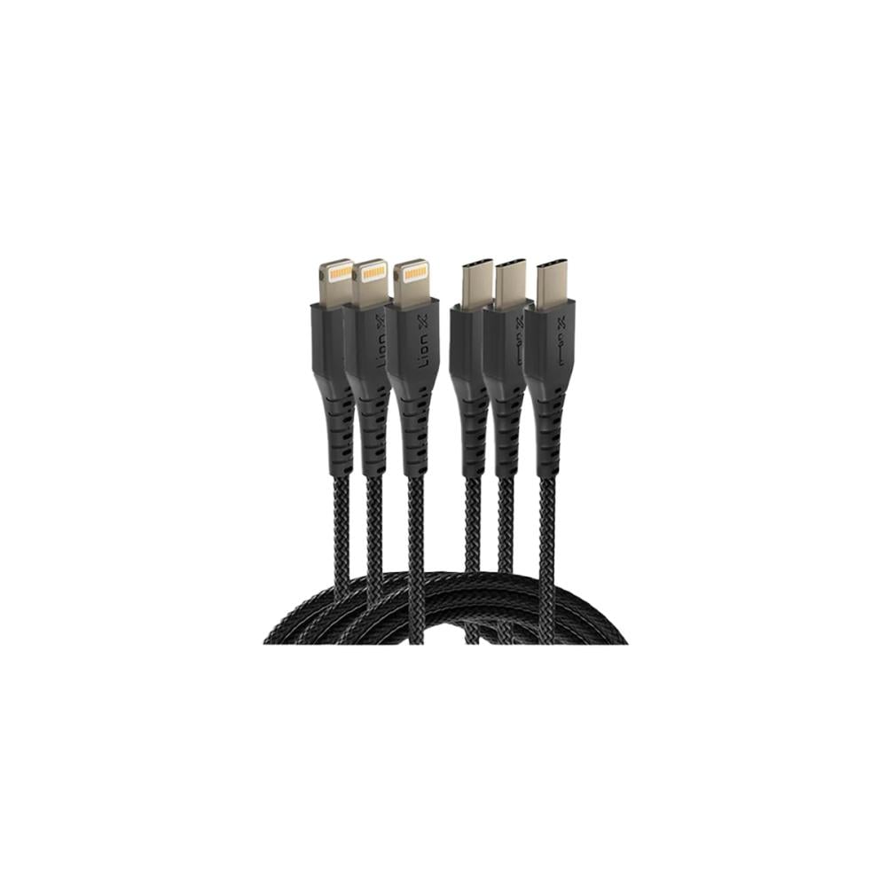 - 3 كيابل ليون إكس (يمكن تحديد نوع الكيابل هنا، مثل: لايتنينج، USB-C، مايكرو USB، أو مزيج منها، إذا كانت المعلومات متوفرة).