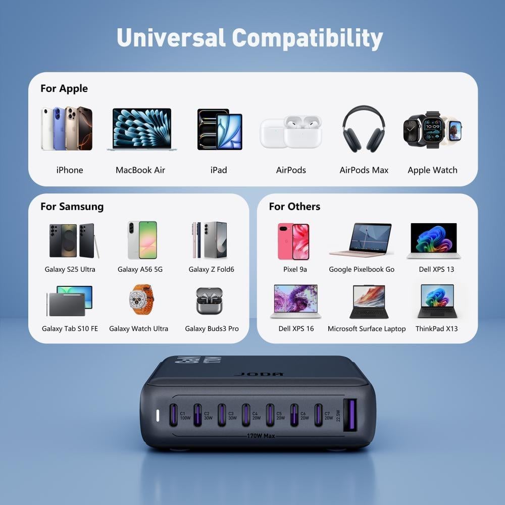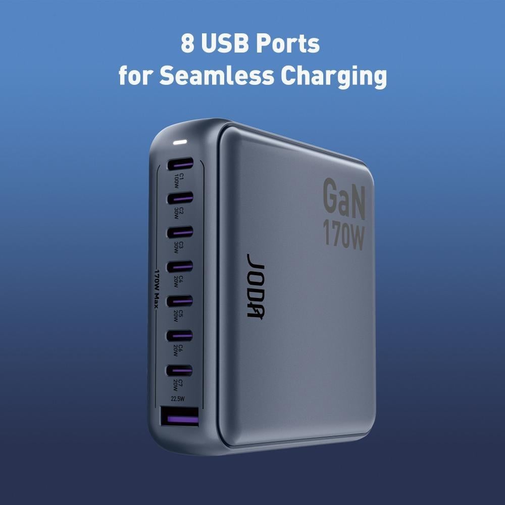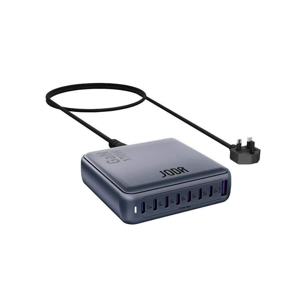 اجعل عملية شحن أجهزتك أسرع وأكثر ذكاءً مع منصة الشحن متعددة المنافذ من JODA بقوة 170 واط.