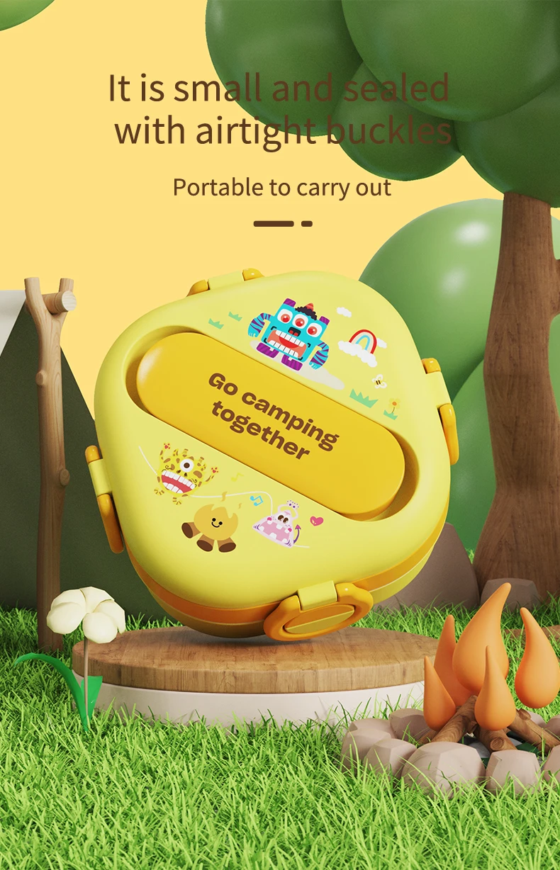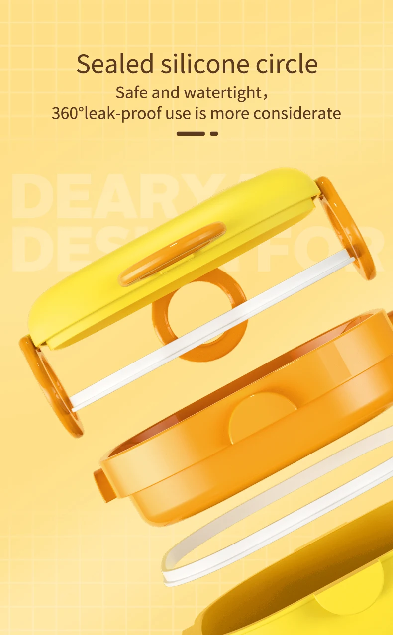 صندوق غداء مزدوج الطبقات محكم الغلق - أصفر