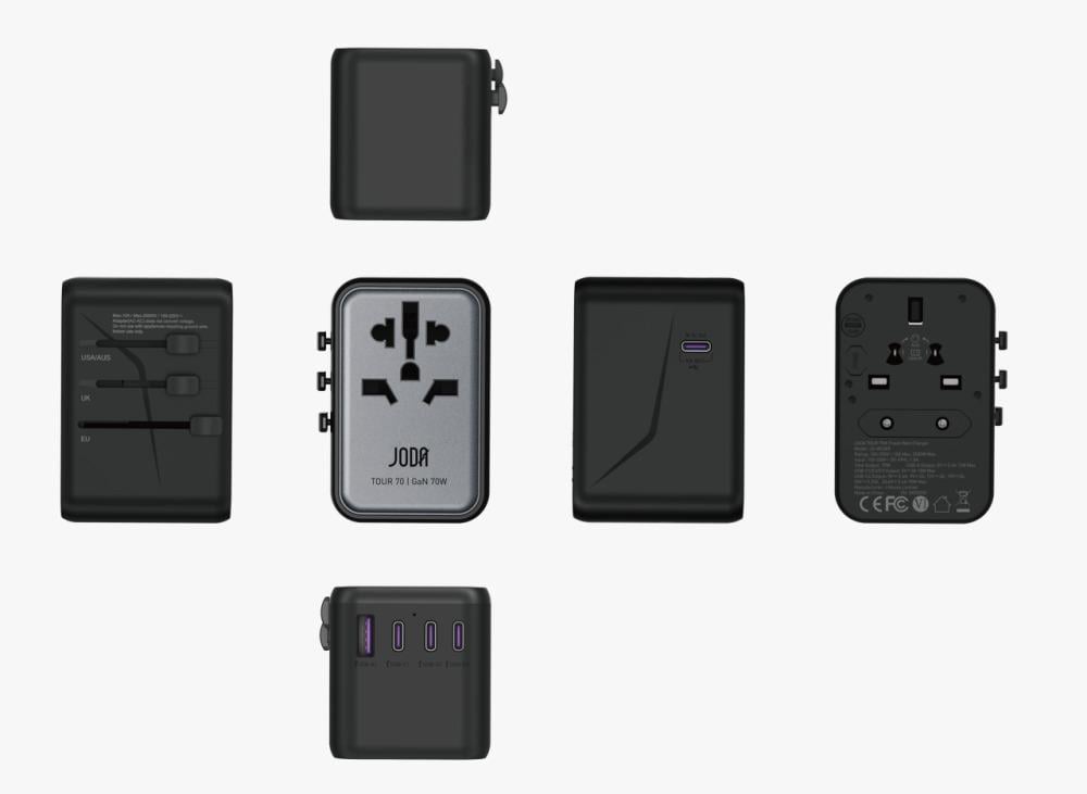 The JODA TOUR 70 70W GaN (Gallium Nitride) Travel Charger delivers an ultra-fast and efficient charging experience for your multiple devices. Featuring a compact design and sleek black finish, it's ideal for use while traveling, at home, or at the office. Thanks to advanced GaN technology, this charger delivers high performance while minimizing heat and bulk, while supporting multiple device charging simultaneously.