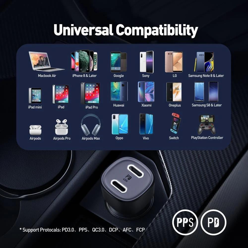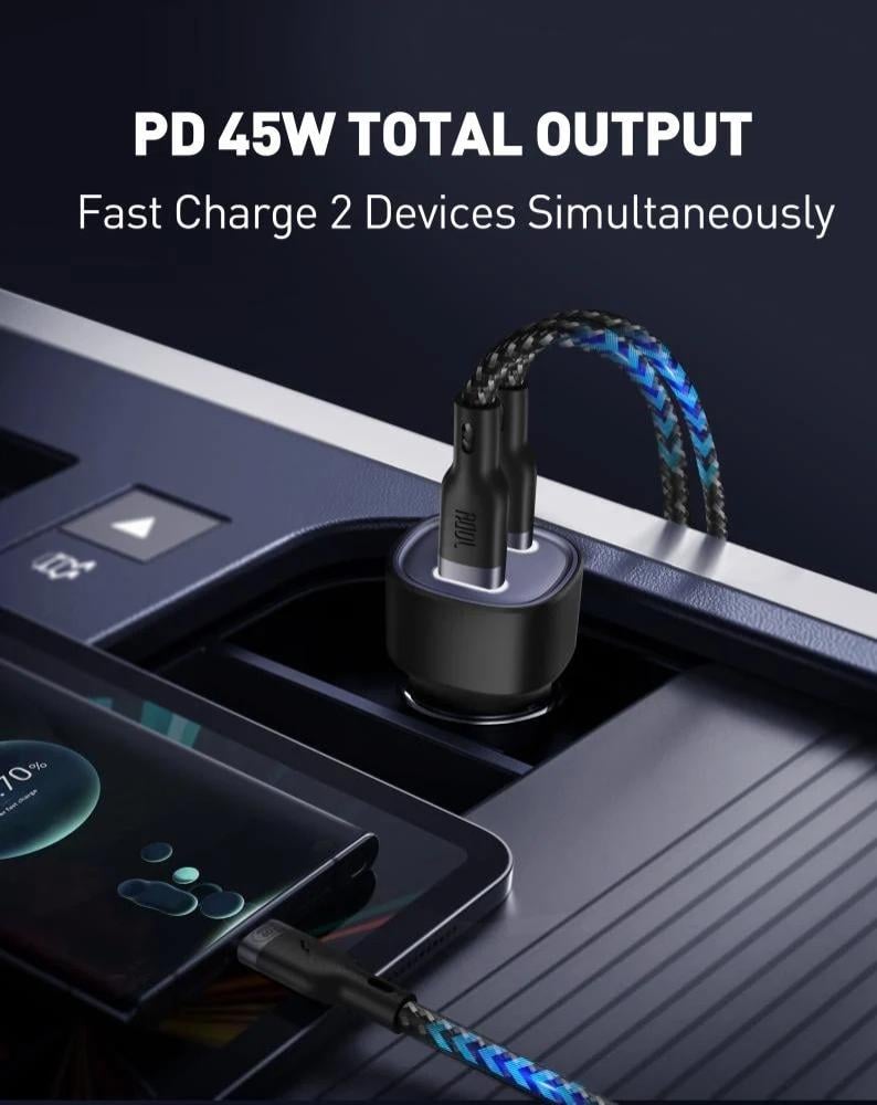 JODA 45W Dual-Port Type-C Car Charger - Black