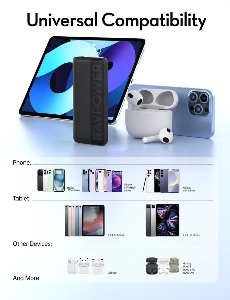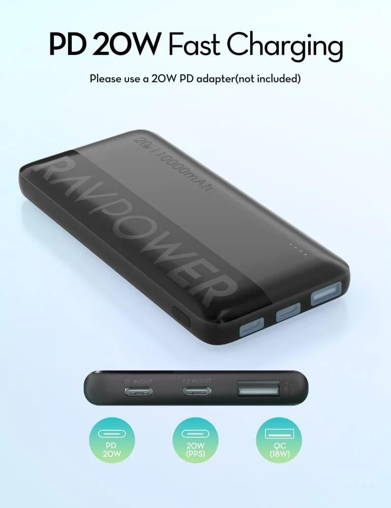 If you need a powerful and practical portable battery, the RAVPower 10,000mAh 20W battery pack offers the high performance and safety needed to charge your devices anytime, anywhere. Get it now and enjoy fast and efficient charging throughout the day!