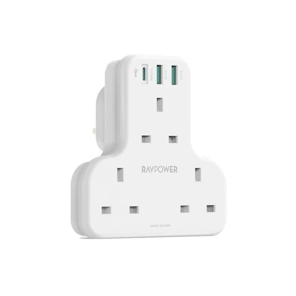 Get a comprehensive solution for connecting and powering your devices with the RAVPower wall outlet . This product features a modern design that combines power and versatility, making it ideal for safely and efficiently charging and powering electrical and electronic devices.