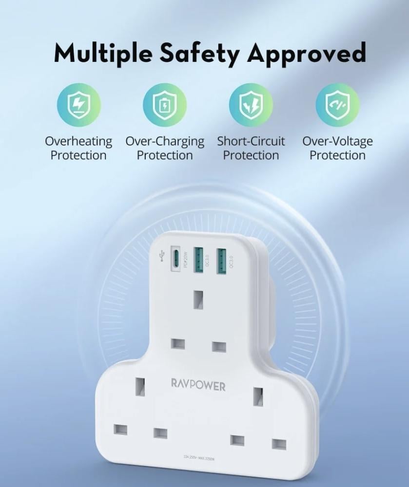 With the RAVPower 3-Outlet Wall Charger + 2 USB Ports + 1 Type-C Port , you can enjoy peace of mind and efficient charging anywhere. It's the perfect choice for meeting all your daily power needs with reliability and style.